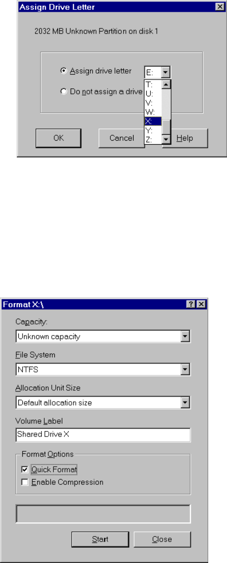 4. Repeat steps 1 through 3 to assign a drive letter for each array to be shared in the cluster.