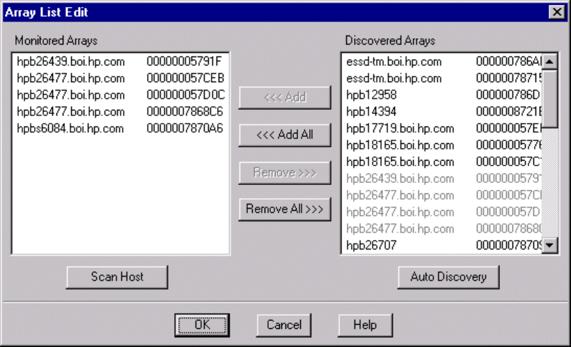 arrays are identified, they are added to the Discovered Arrays in the Array List Edit dialog box. If both