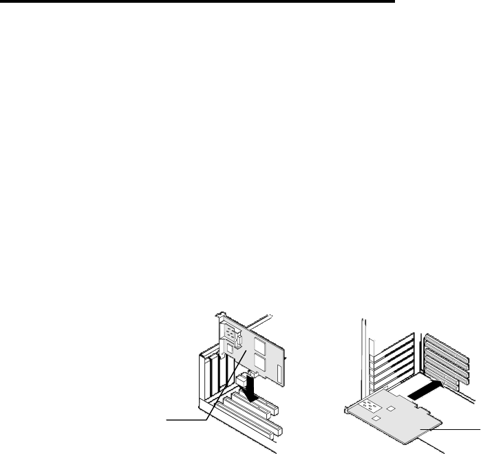 Install the FC I/O adapter in an appropriate PCI slot as specified in the Configuration Guide for the HP NetServer.