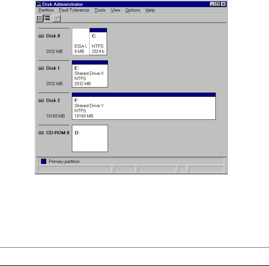 Exit Disk Administrator. The arrays are now fully configured for use by the cluster.