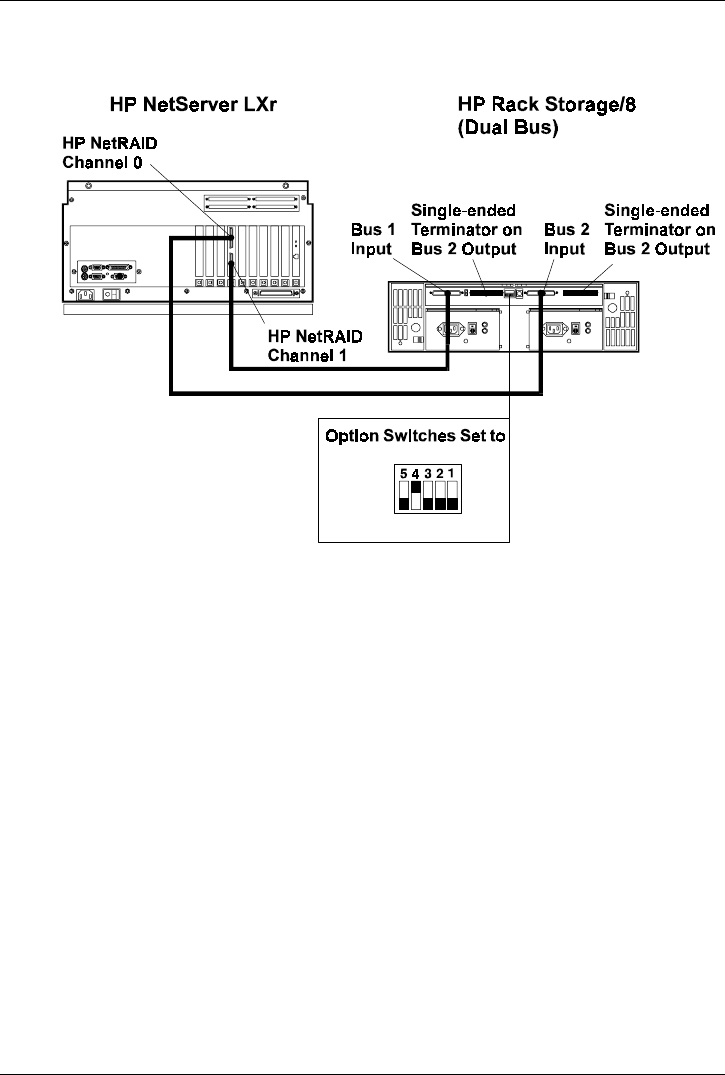 an HP NetServer LXr to a Dual-Bus HP NetServer Rack Storage/8.