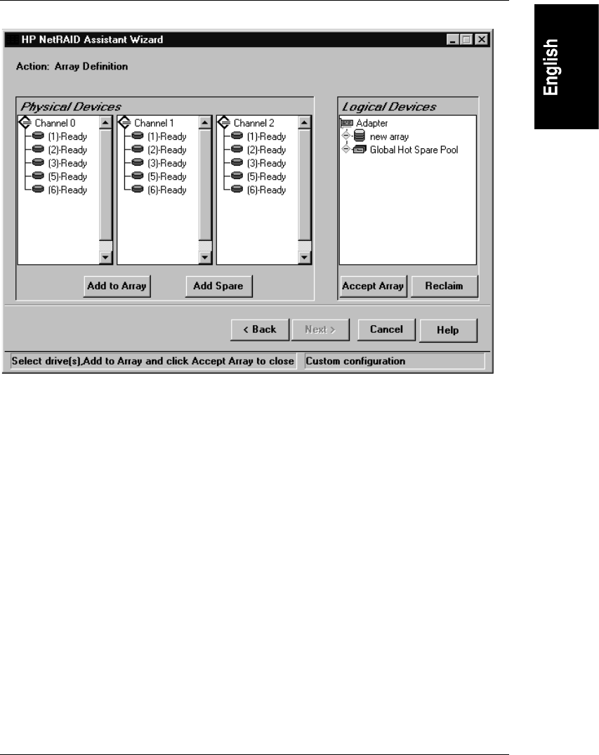 Figure 5-7. HP NetRAID Assistant Wizard Array Definition Window