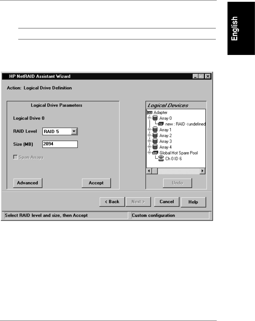Figure 5-8. HP NetRAID Assistant Wizard Logical Drive Definition Window