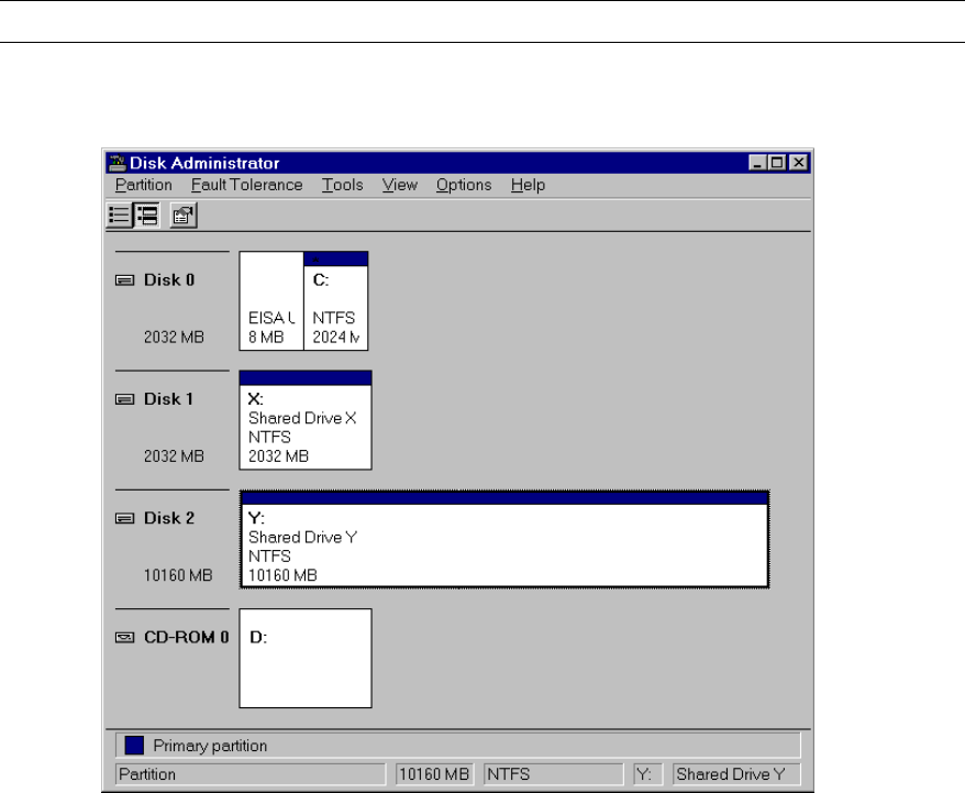 The following example depicts both drives formatted with permanent drive letters assigned.