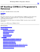 HP NonStop CORBA 2.3 Programmer's Reference Next HP NonStop CORBA 2.3 Programmer's Reference Part number: 520548002. Published October 2002. Legal Notice Abstract This manual summarizes the ways in which the HP NonStop" CORBA® 2.3 product differs from CORBA as described in the OMG specifications, and provides additional HP-proprietary, programming-reference material. Unless otherwise stated in this manual, the NonStop CORBA 2.3 product is based on the OMG specifications.