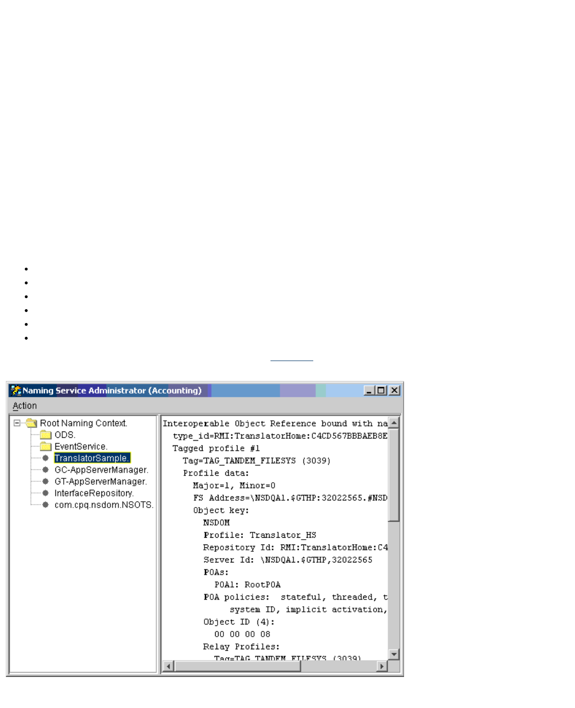 ns_browse tool are string representations of these object references. These string references are called "stringified interoperable object