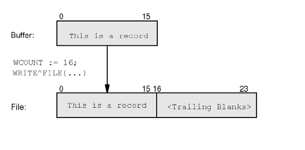 WRITE^BUFFER ':=' "This is a record" -> @S^PTR;