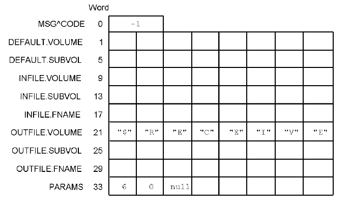 BUFFER[21] ':=' ["$RECEIVE", 8 * [" "]];!OUT file