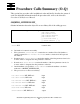 This section lists procedure calls in alphabetic order and briefly describes the syntax of