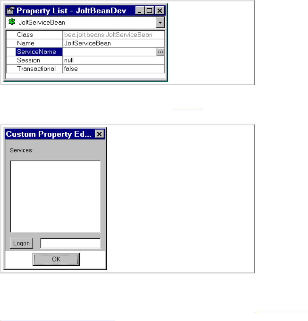 Details of the logon and an example of using the Property List and Property Editor are shown in Using the JoltBeans