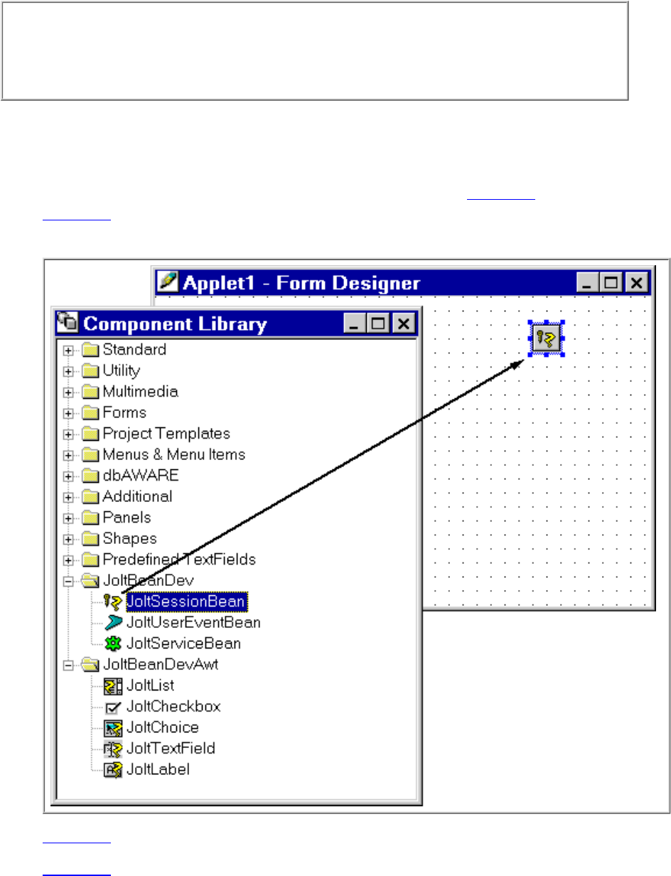 Figure 7-5 shows how a JoltBean is selected and dragged and dropped onto the palette of Form Designer.