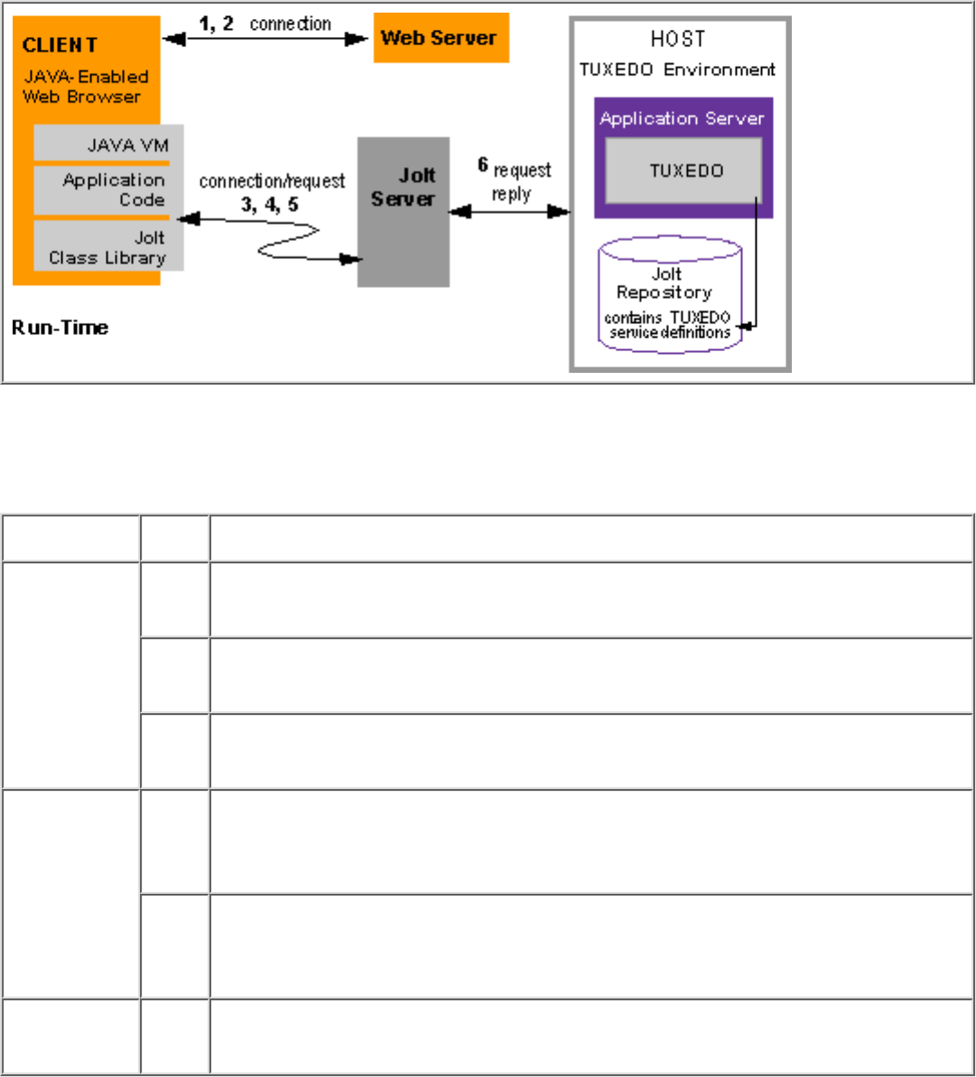 Table 1-1 summarizes the flow of activity involved in using the Jolt Class Library to access