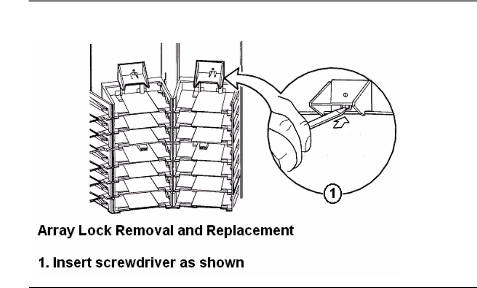 14. Replace the tape cartridge arrays and tape cartridge array lock at Panel 2,
