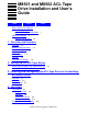 M8501 and M8502 ACL Tape Drive Installation and User’s Guide Index Figures Tables What’s New in This Manual v Manual Information v New and Changed Information About This Manual vii Notation Conventions v vii 1. Overview and Features Overview 1-1 Models and Accessories 1-2 Internal Tape Drive 1-3 Magazine 1-4 Power Supply 1-4 Robotics 1-4 Front Panel Indicators 1-6 2. Setting Up the ACL Tape Drives Setting Up the M8501 ACL Rackmount Unit Setting Up the M8502 ACL Tabletop 2-5 2-1 3.