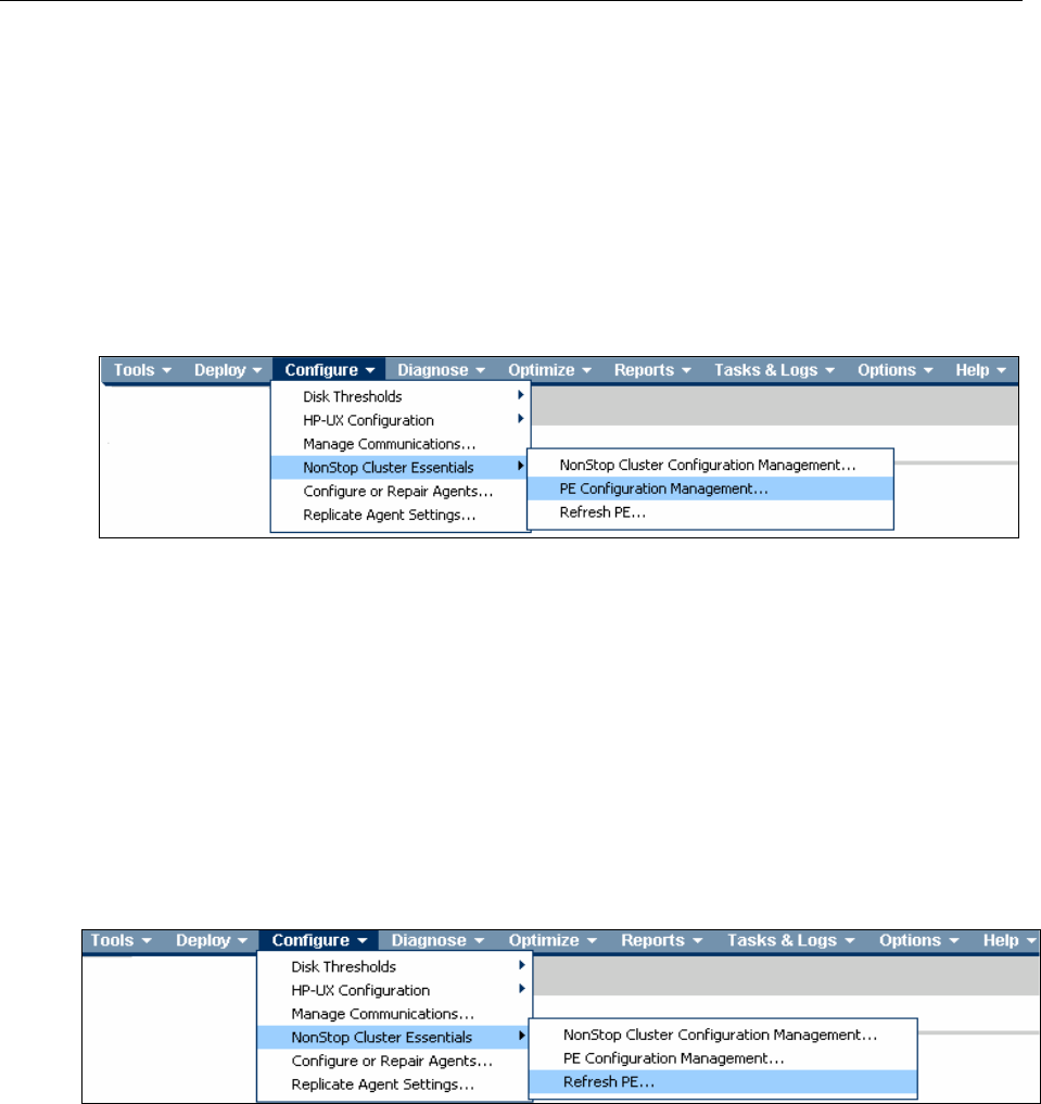 Configure -> NonStop Cluster Essentials -> Refresh PE…