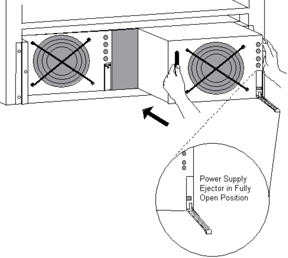Raise the ejector on the replacement power supply to its fully closed position. This action