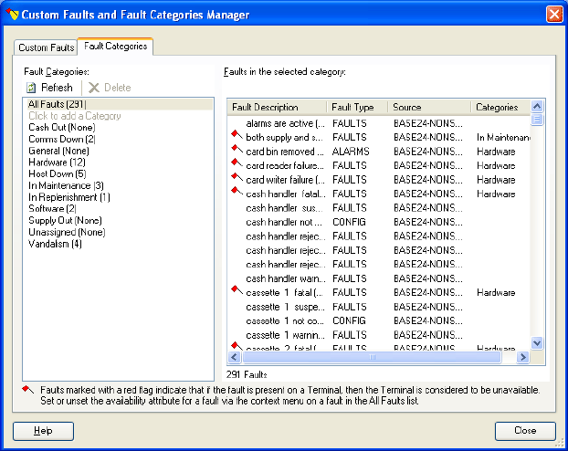 Figure 11-4 Custom Faults and Fault Categories Manager Dialog Box – Fault Categories