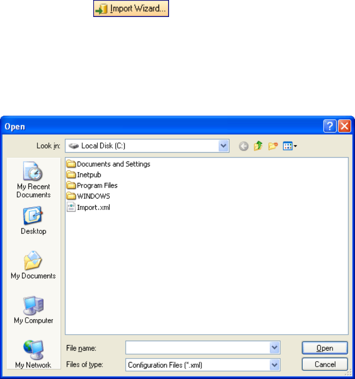 the Load a previously saved Import configuration radio button to load configuration from an XML file.