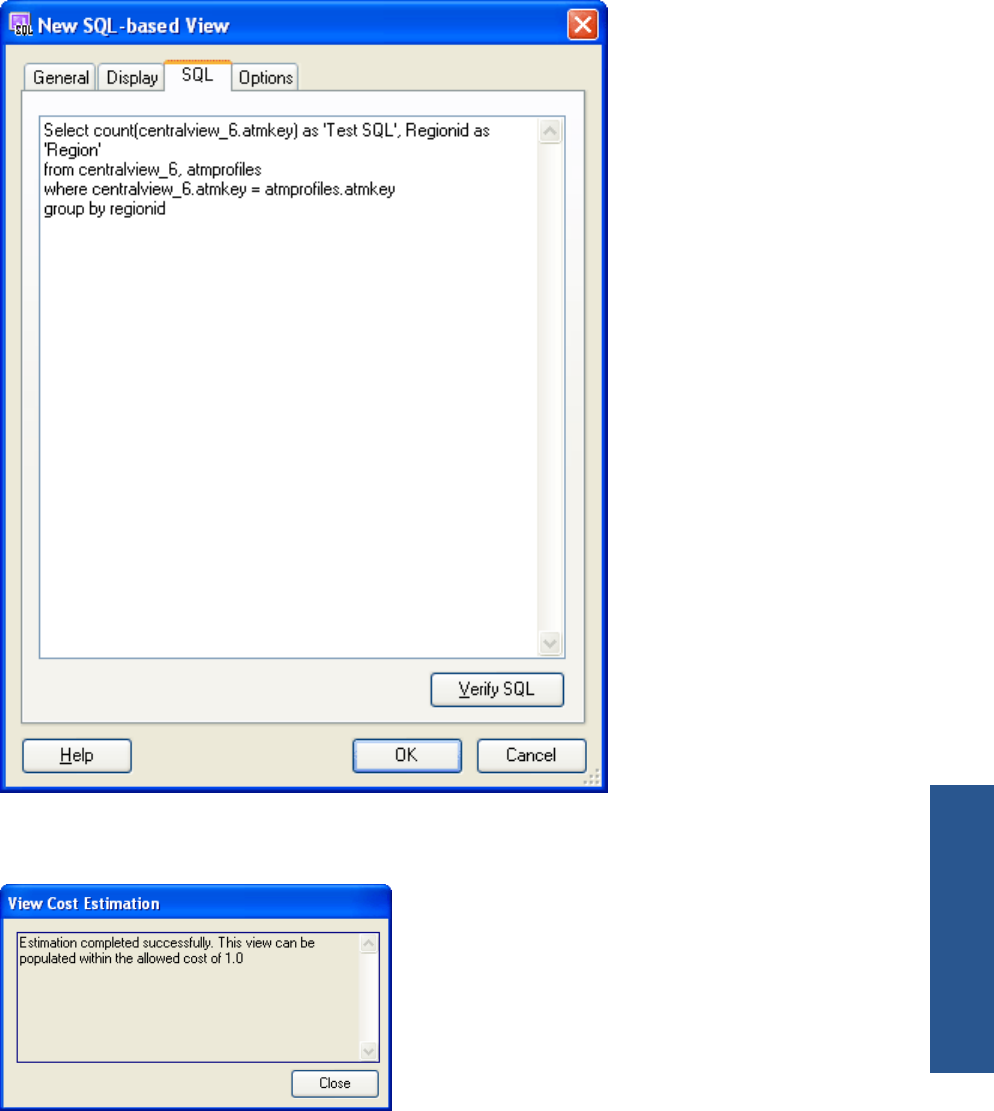 6. Click on the Close button to close the View Cost Estimation box and return to the New SQL-based View