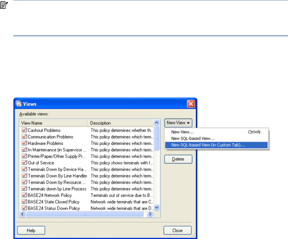 Figure 8-26 Views Dialog Box with New SQL based View (in Custom Tab) Option Selected