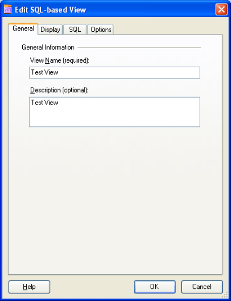 3. The corresponding Edit SQL-based View dialog box is displayed with the General tab page.