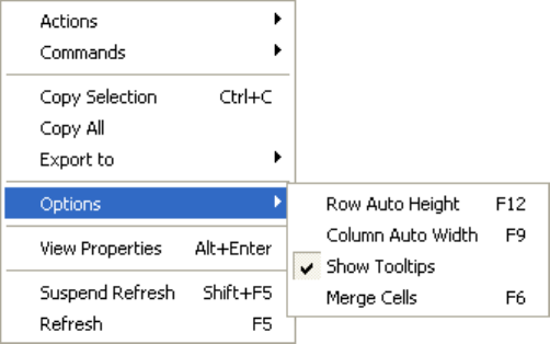 Copy Selection: Use this option to copy the selected row of data to the clipboard.