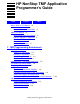 HP NonStop TMF Application Programmer’s Guide Abstract This manual describes how to design requester modules and server modules that run in the HP NonStop™ Transaction Management Facility (TMF) programming environment on HP NonStop servers, and how to use the TMF audit-reading procedures. Product Version TMF G07 Supported Releases This manual supports G06.23 and all subsequent G-series release version updates (RVUs) until otherwise indicated in a new edition.