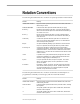 Notation Conventions The following list summarizes the conventions for syntax presentation in this manual. Notation Meaning UPPERCASE LETTERS Uppercase letters represent keywords and reserved words; enter these items exactly as shown. Lowercase italic letters represent variable items that you supply. Brackets enclose optional syntax items. A group of vertically aligned items enclosed in brackets represents a list of selections from which you can choose one or none. Braces enclose required syntax items.