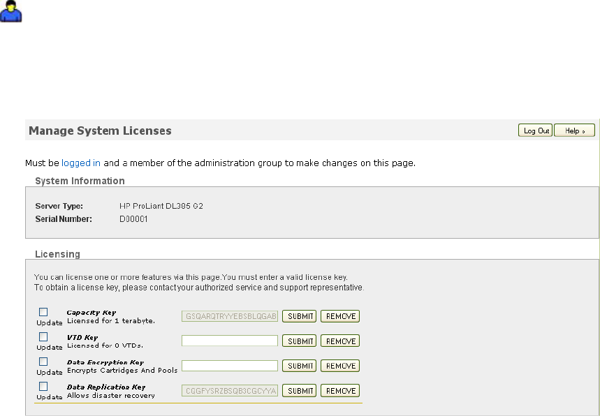 2. Click Manage System Licenses. A page similar to the following is displayed: