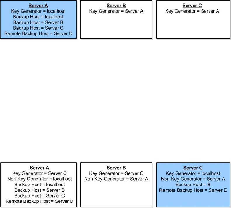 If you choose to designate another server (server C in this example) as the key generator after