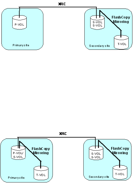Compatible XRC S-VOL and a Compatible FlashCopy S-VOL. In this configuration, data is copied