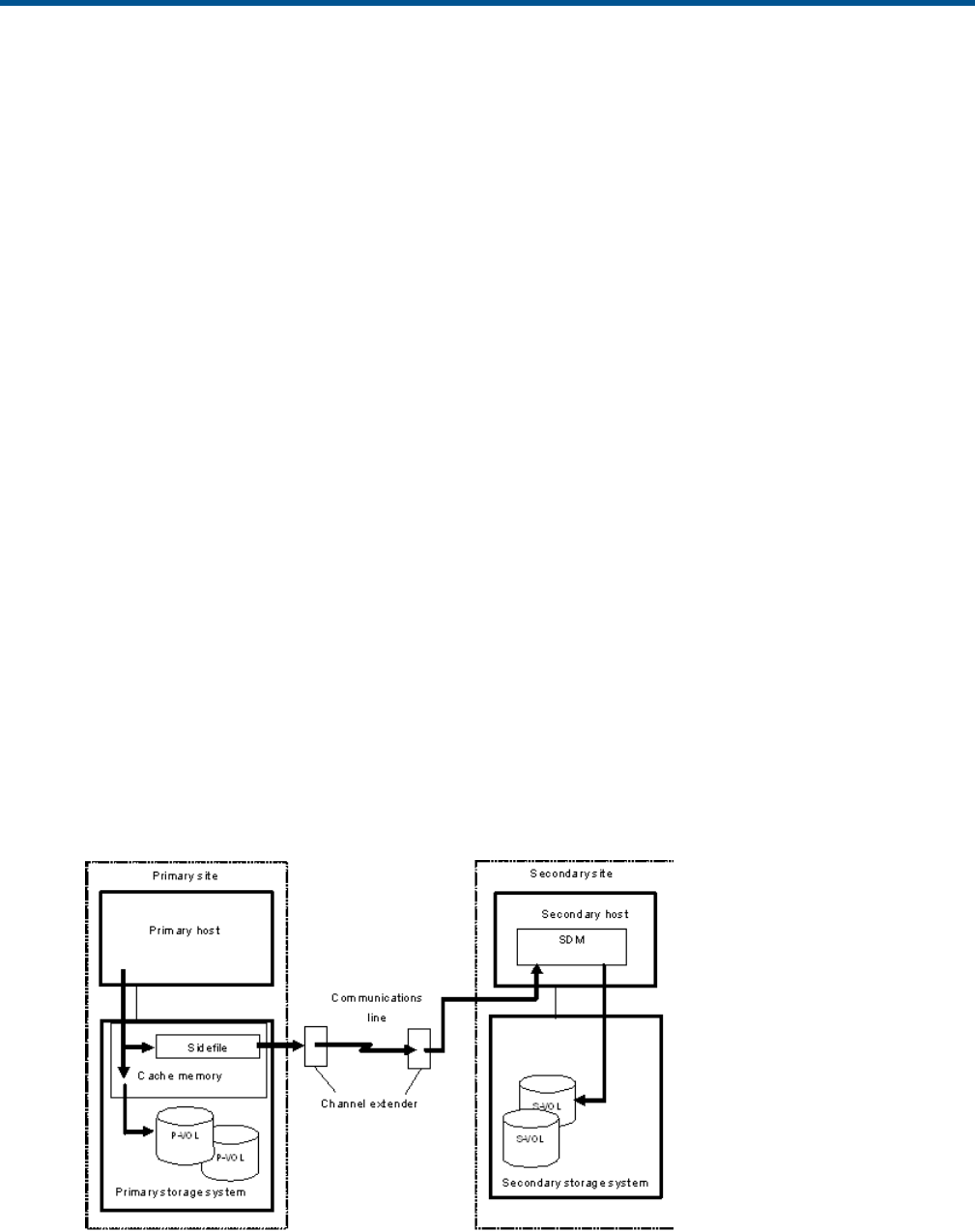 the same time, the data is temporarily stored in cache memory as a sidefile. At the secondary site,