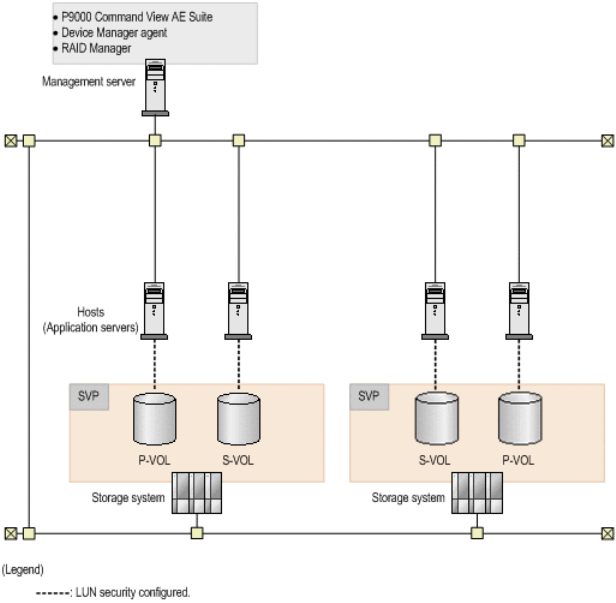 • From the P-VOL and S-VOL, LUN security must be set for the application server.