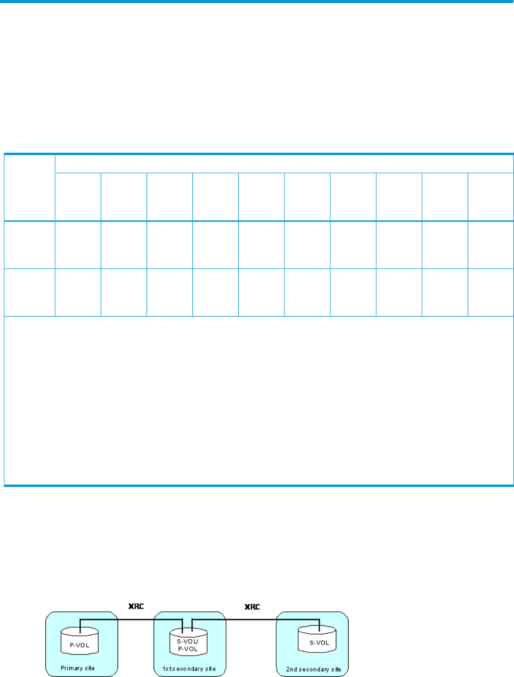 first secondary site using Compatible XRC, and then the same data is copied from the first secondary
