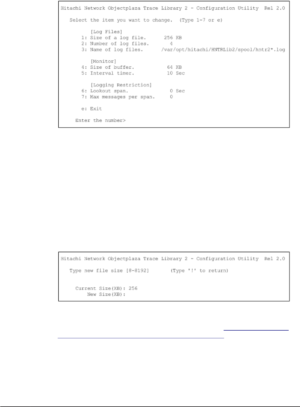 - Displaying the Hitachi Network Objectplaza Trace Library setup menu