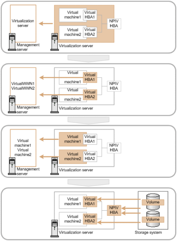 Figure 10 Operation workflow for allocating volumes to virtual machines (when allocating a virtual