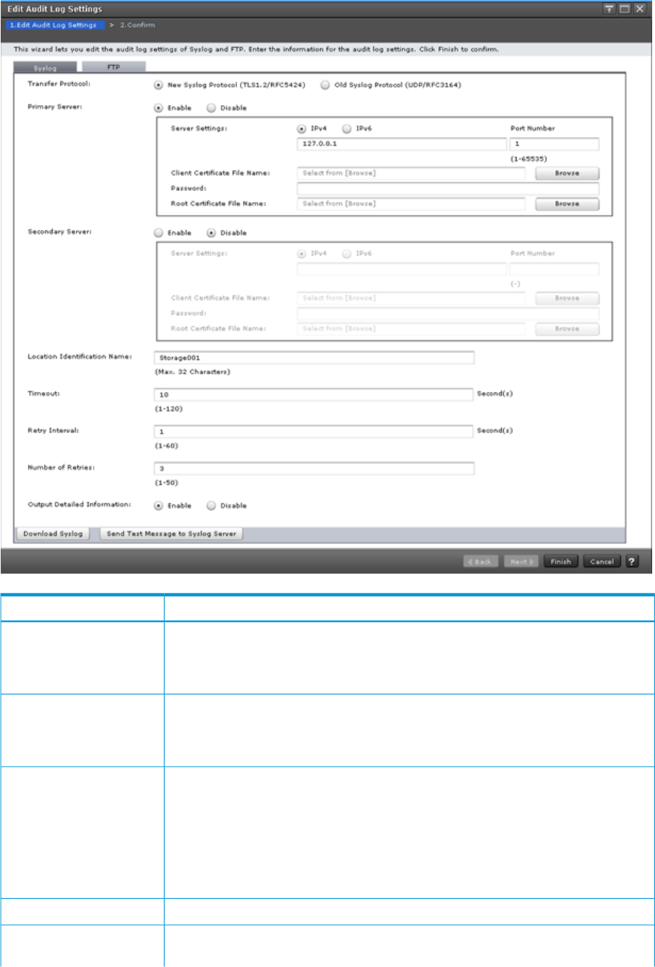 • Disable: Do not transfer the audit log to the syslog server.