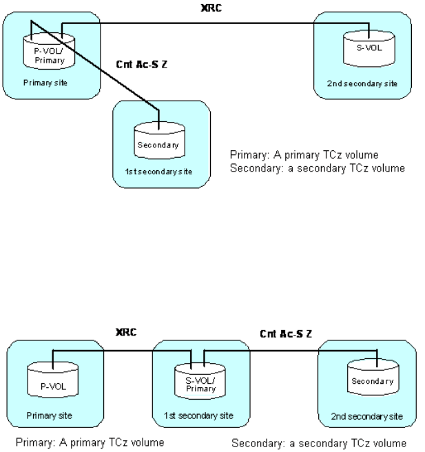 XRC S-VOL and a Cnt Ac-S Z primary volume. In this configuration, data is copied from the primary