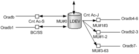 management, RAID Manager can be assigned to seven groups per LU that describes seven mirror