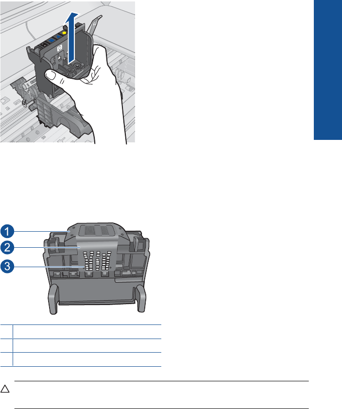 CAUTION: Touch the nozzle and the electrical contact areas only with