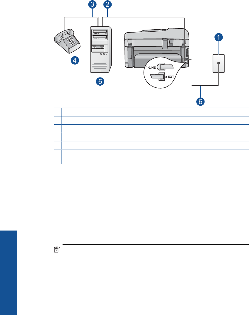 • If your computer has two phone ports, set up the HP Photosmart as described below.