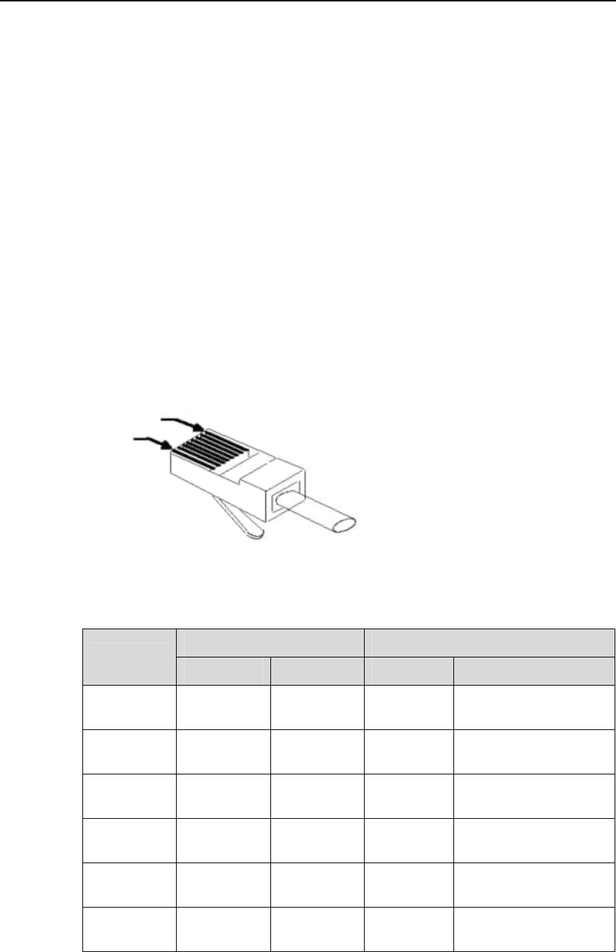 connect it. The following figure illustrates the appearance and pinouts of an RJ-45