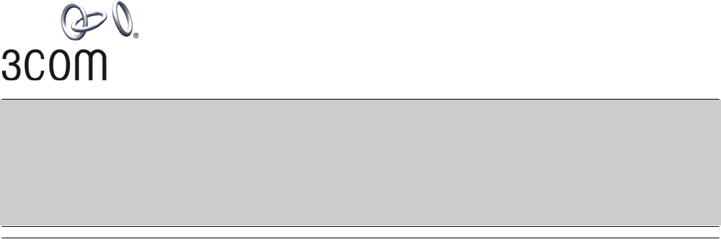 3Com Corporation 350 Campus Drive Marlborough, MA USA 01752-3064 Copyright © 2003, 3Com Corporation. All rights reserved. No part of this documentation may be reproduced in any form or by any means or used to make any derivative work (such as translation, transformation, or adaptation) without written permission from 3Com Corporation.