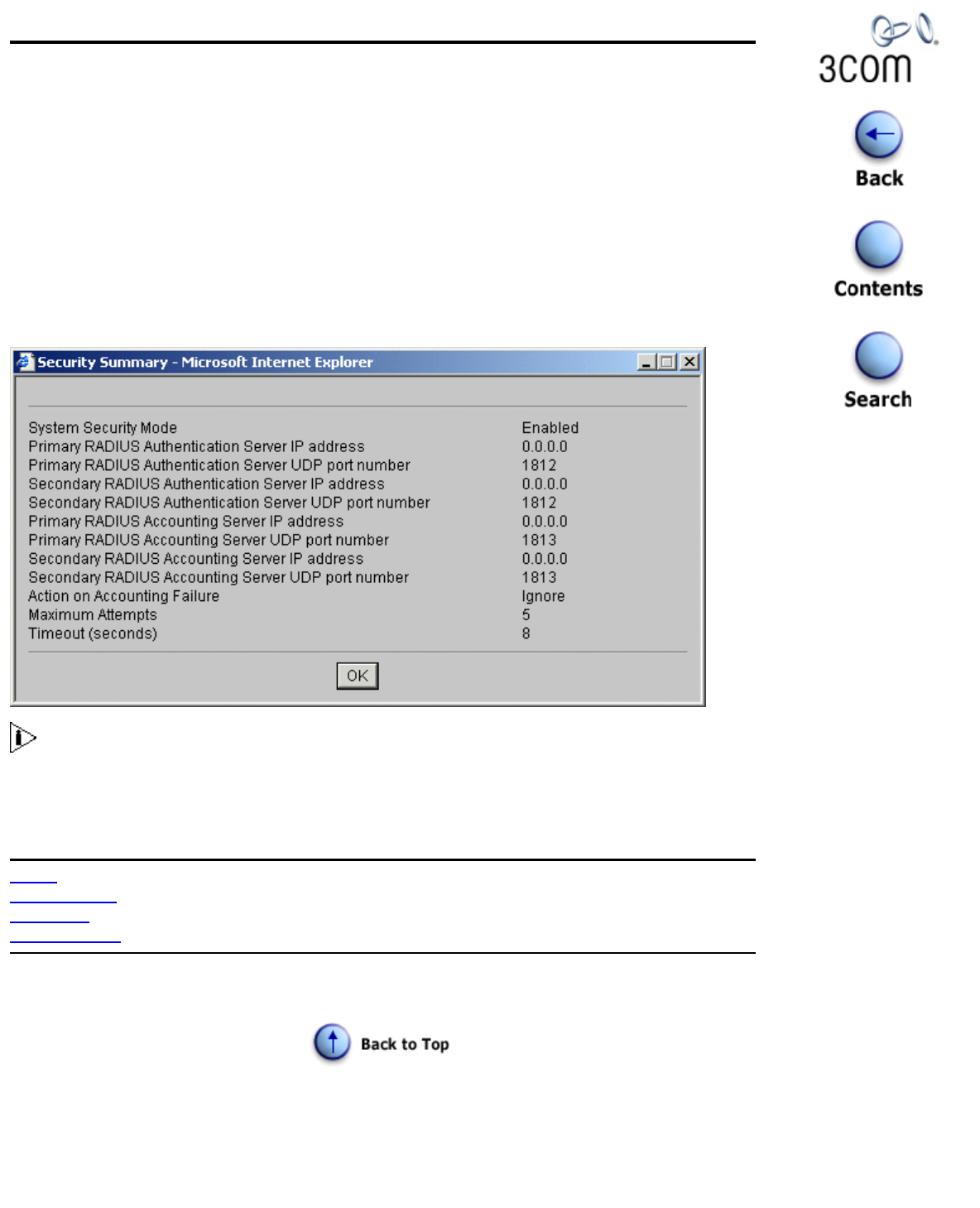 - Web Management Interface - Security Radius Summary