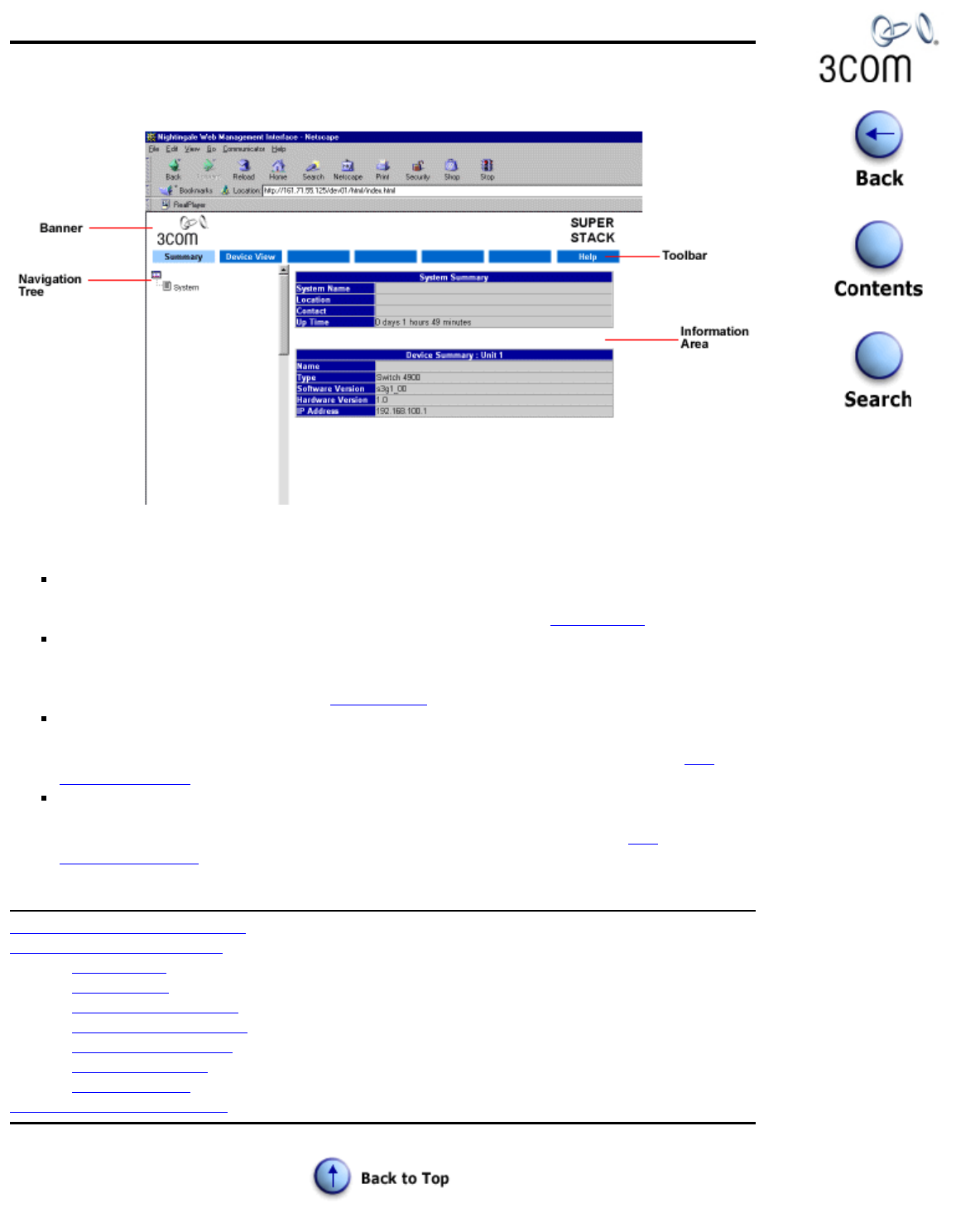 - Introduction - Using the Web Management Interface - The Information Area