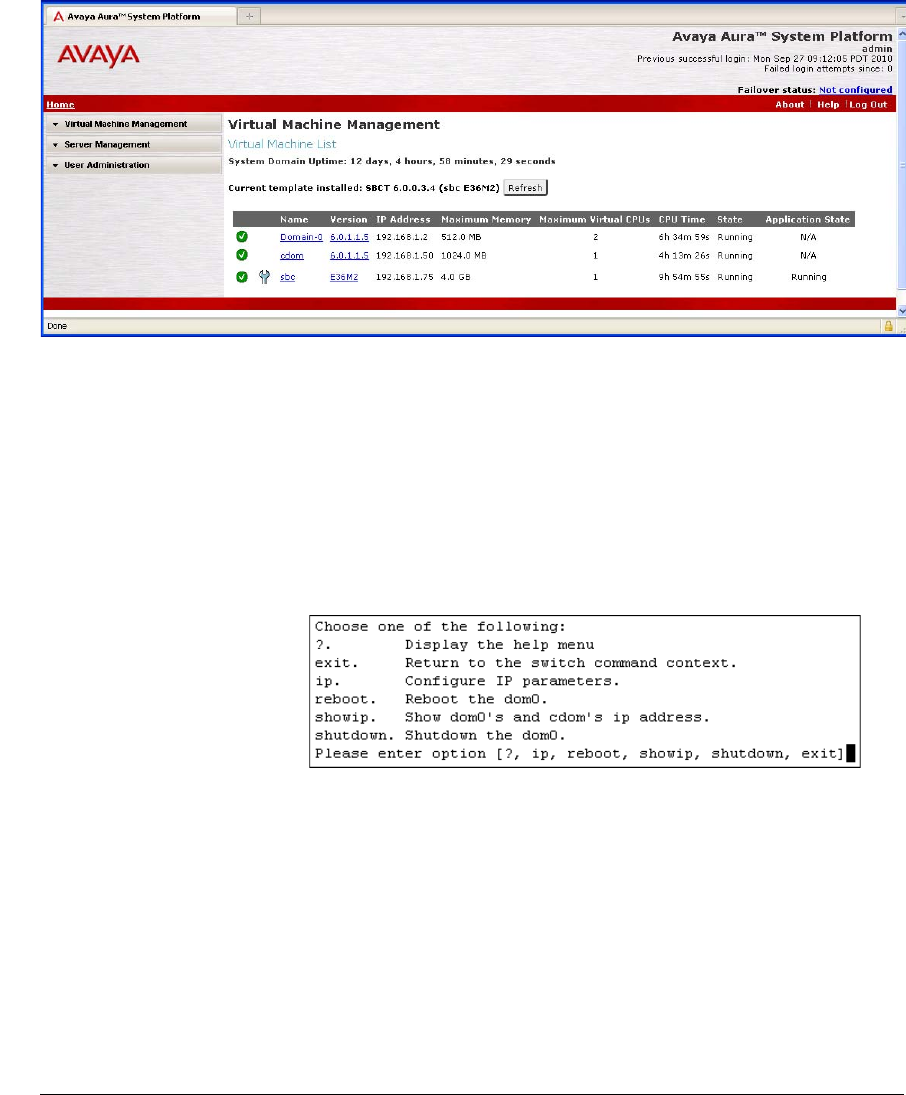2. Once you have confirmed that the Avaya Aura System Platform is operat-