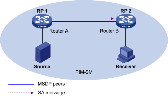 the SA message. When the SA message reaches RP 2, RP 2 de-encapsulates the message.