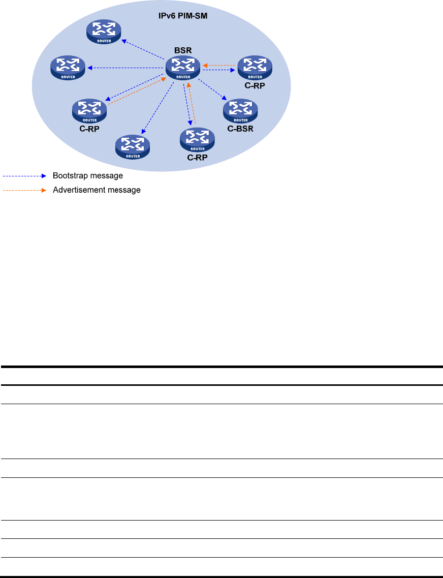RPs. The BSR then encapsulates the RP-set in the bootstrap messages it periodically originates and floods