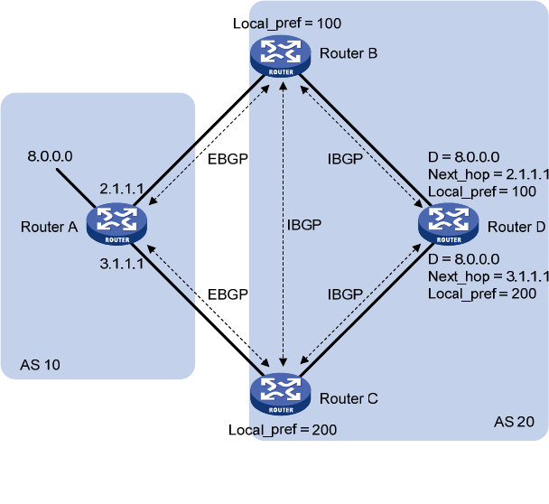available, BGP selects the best route in the following sequence: