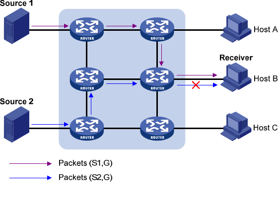 Therefore, multicast streams from both Source 1 and Source 2 will flow to Host B whether or not it needs